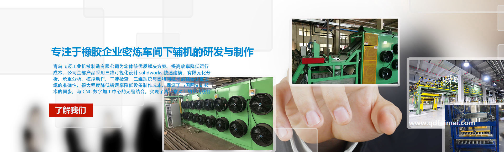 青島飛邁工業機械制造有限公司坐落于青島市,成立于2012年,注冊資金200萬人民幣,我們專注于橡膠企業密煉車間下輔機的研發(fā)與制作、并擁有自營進出口權。